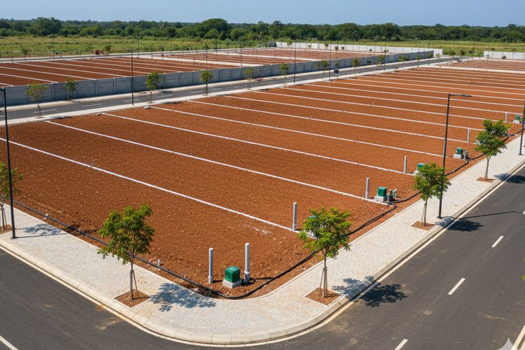 Amenities include a children’s play zone, jogging track, and integrated senior citizen park. Water supply is available for every plot along with a 24×7 security cabin, clubhouse, and recreational spaces for relaxation.